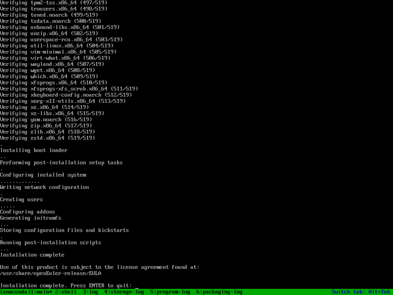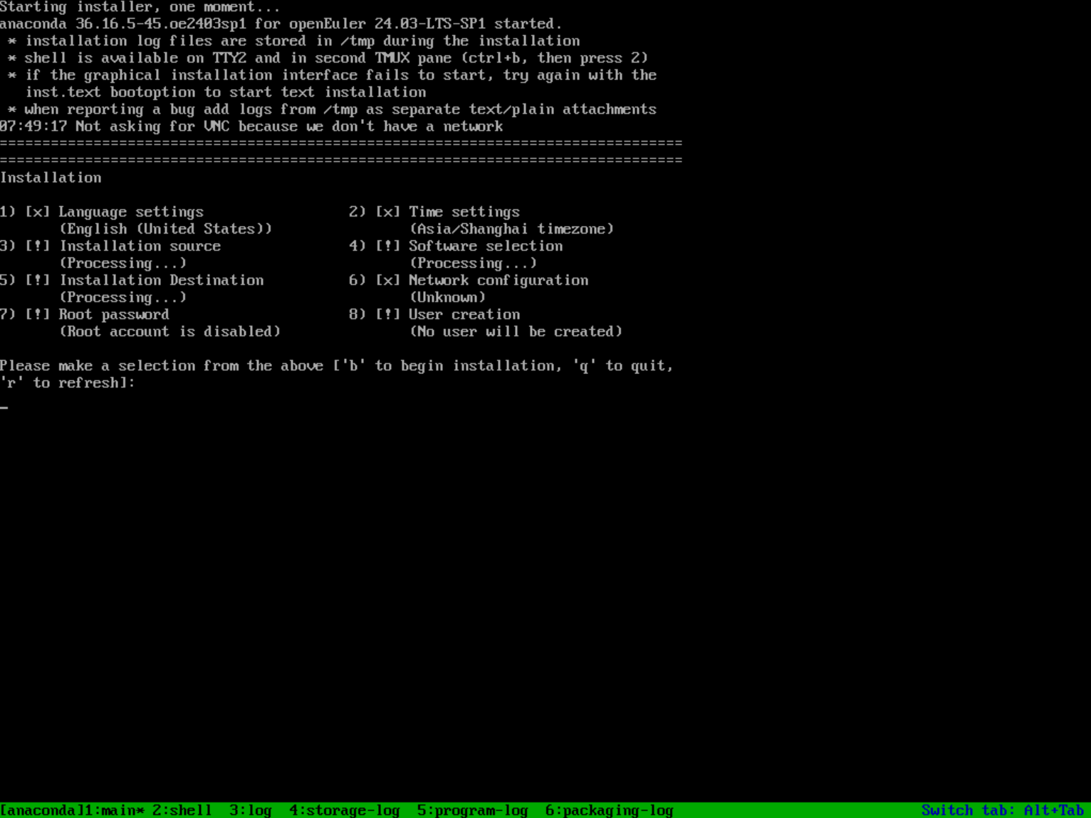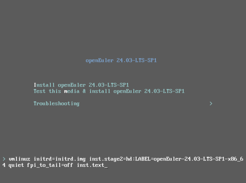 根据CentOS的使用经验,判断openEuler应该也可以进入文本化交互的安装过程。
